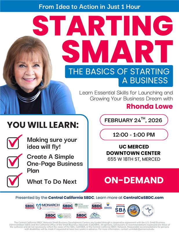 Join us for Starting Smart: The Basics of Starting a Business workshop with SBDC Business Advisor Rhonda Lowe and learn how to turn your idea into action in just one hour.